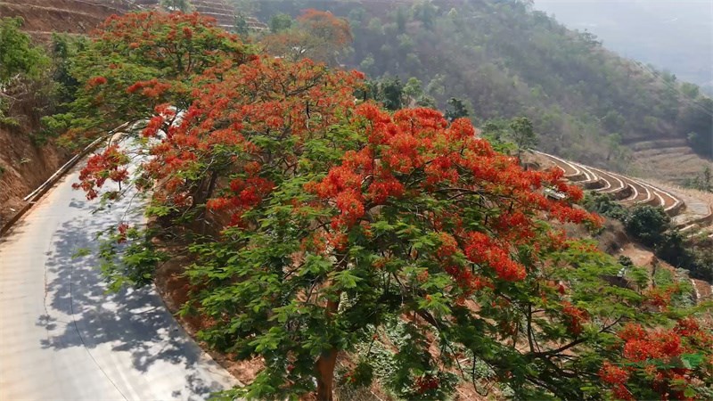 绿美施甸:凤凰花开绚丽如霞 灼灼花朵映红怒江峡谷
