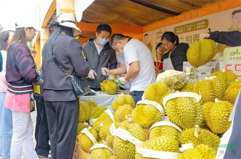 图为:正大集团在活动现场展销的泰国金枕榴莲