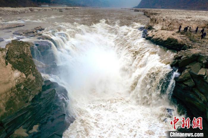 2023年2月11日,陕西延安,壶口瀑布波涛奔腾。(无人机照片) 霍勇 摄