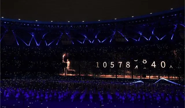 资料图 9月23日,数字火炬手在开幕式上进行火炬传递。新华社发