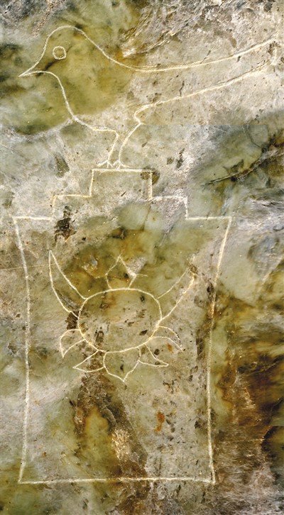 刻鸟立高台符玉璧局部特写。良渚博物院供图