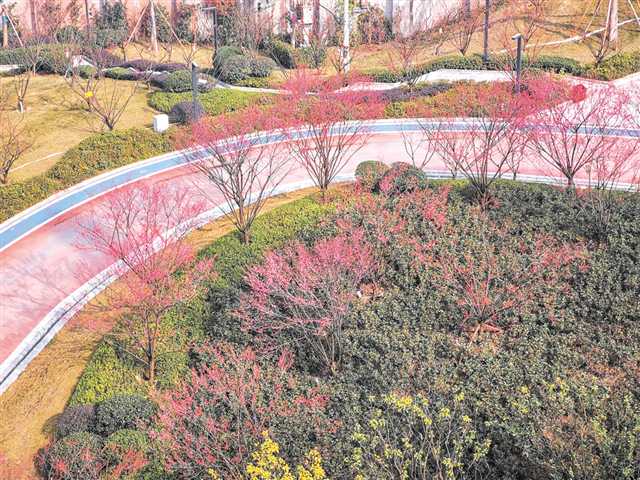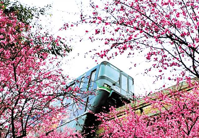 日暮诗成天又雪,与梅并作十分春。三月阳春,气温回暖,园区内鲜花竞相绽放,处处繁花似锦,把整个公园装扮得春意盎然。穿过具有历史积淀、文化传承、地域风情的鹅岭,沿着“开往春天的列车”踏入佛图关公园,眼前便有“客路青山外,行舟绿水前”的豁然开朗。“曲尽江流换马裘, 美人梅下引风流。”娇艳的美人梅,迫不及待地缀满枝头,似有“竹外桃花三两枝”宜人春景。在蓝天白云的衬托下,极目远眺犹如一片云霞般绚烂,走进花海之中,春日微风拂过,好似一群娇羞的少女翩翩起舞。盘旋着佛图关公园错落、蜿蜒的山势,轨道交通2号线穿行在花海之中,宛如雕刻了一幅立体别致、流光溢彩的“壁画”。市民游客在春色之中纷纷赶来打卡,在“开往春天的列车”画卷下驻足赏花,拍照留念,沐浴着春日明媚而温暖的阳光,与浪漫的春天撞个满怀。