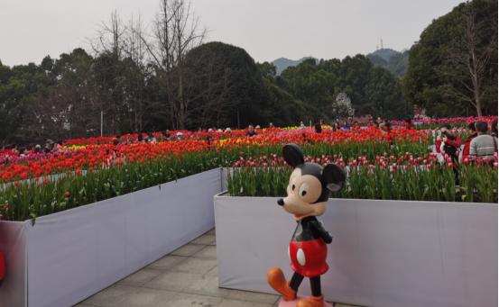 近日,重庆市南山植物园郁金香花海盛开,繁花似锦,引来许多游客驻足拍照。据了解,此次郁金香展览将持续到3月下旬,展览所用郁金香皆为自主培育,数量共12万余株,品种40余种,主要以红色系郁金香为基调,搭配以迷宫的形式布景造型,打造出精而美的园林景观,给游客们营造出在花海中身临其境的氛围,同时在周围添置了主题花堆、节点和卡通人物摆件等。