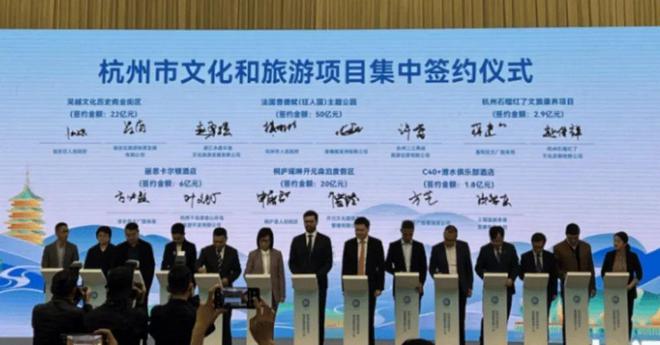 3月22日,在浙江杭州召开的杭州市旅游业高质量发展大会上,杭州集中签约14个重大文旅项目,总投资418.83亿元。其中,杭州与法国普德赋(狂人国)签订了计划总投资50亿元的项目合约,将在杭州选址“三江两岸”沿岸区域建设一座新的主题公园。
