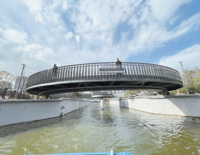 如果将航线比作细细的珠链,24座跨河桥就是一颗颗珍珠,形态各异,各美其美,堪称亮马河的点睛之笔。“过去几年,24座桥梁进行了不同程度的改建,既要满足通船需求,安全又好看,还得起到畅通周边交通的作用。”朝阳区相关负责人介绍。