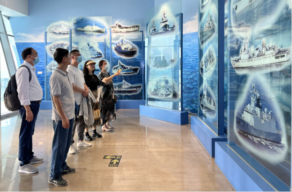 重庆建川海疆博物馆主要由166舰陈列展和建川海疆博物馆两处场馆组成,两者分处江上、岸边遥相呼应。登上166舰,大家有序参观了战舰陈列展,在主甲板、前主炮、防空导弹、尾部主炮以及指挥所、驾驶室等区域频频驻足,认真观看和了解相关情况;在建川海疆博物馆内,大家仔细观看了馆内陈列的图文资料、模型、实物及视频,回顾了人民海军战斗历程,以及海军建设取得的成就。