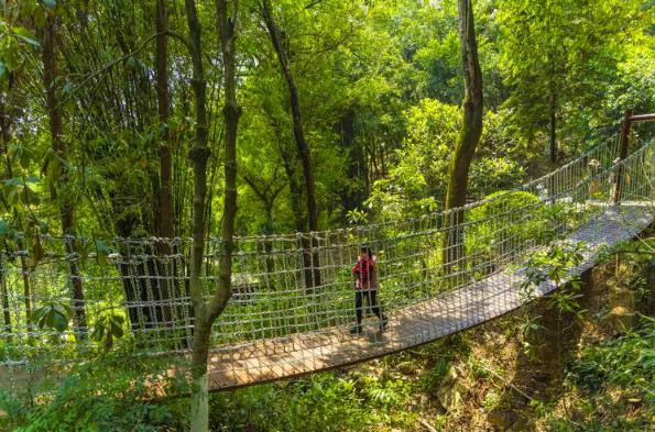 吊桥区域位置为山谷山腰位置,登高望远视线较好,为园中重要的景观节点,此前,由于设施老旧,吊桥处于封闭状态。大渡口区城市管理局对此进行修缮,吊桥重新开放,让游客更直观地感受中华美德公园的美景。