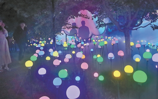 人们走进国际光影艺术季里徜徉奇妙之光。本报记者 刘平摄