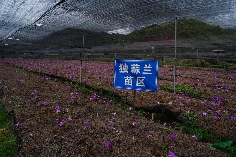 图为:独蒜兰的人工繁育和规模化种植
