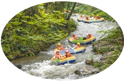 游客在浙江淳安富文乡王子谷漂流点漂流戏水。杨 波摄(人民图片)