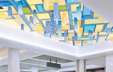 “时至今日,‘云’不仅是一种自然的存在,更是链接科技与生活的媒介。”在未来科学城北站,墙面装饰品以“云创生活”为主题,用陶瓷马赛克等材料展现公众在“云上空间”运动、工作、学习的场景,营造出轻松的文化艺术氛围。未来科学城站站厅艺术品则提取“藻井”“穹顶”的造型特点,用通透的网状材质,在轨道空间中打造轻盈、缥缈、深邃的苍穹空间。